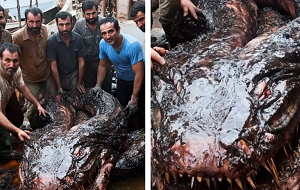 ماسال برتر / تصویری از یک موجود ماهی عجیب و ناشناخته در دام صیادان بندر انزلی در شبکه های اجتماعی دست به دست شده است.که درباره آن نوشته اند که ماهیگران در حال ماهیگیری بوده اند یک موجود ناشناخته را که چهره عجیب و غریبی دارد صید کرده اند.