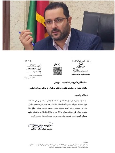 به گزارش پایگاه خبری ماسال برتر ، مبلغ ۱۵۰ میلیارد ریال اعتبار از سوی وزارت بهداشت، درمان و آموزش پزشکی به دانشگاه علوم پزشکی گیلان اختصاص یافت تا در حوزه انتخابیه تالش، رضوانشهر و ماسال هزینه شود.این اعتبار به منظور تقویت زیرساختهای بهداشتی و درمانی، ارتقای کیفیت خدمات سلامت و پاسخ به نیازهای ضروری مردم منطقه در نظر گرفته شده و میتواند گام مؤثری در بهبود وضعیت خدمات درمانی شهرستانهای غرب گیلان باشد.