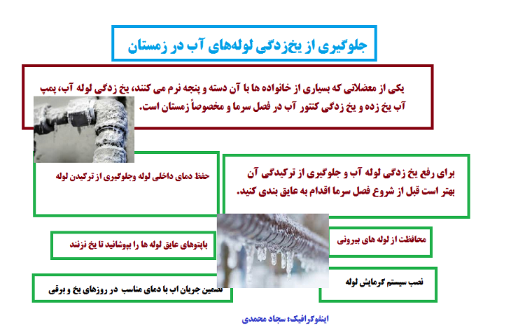 اقدامات پیشگیرانه برای جلوگیری از یخزدگی لولههای آب/اینفوگرافیک